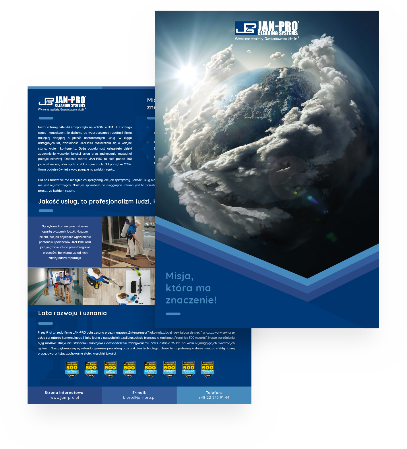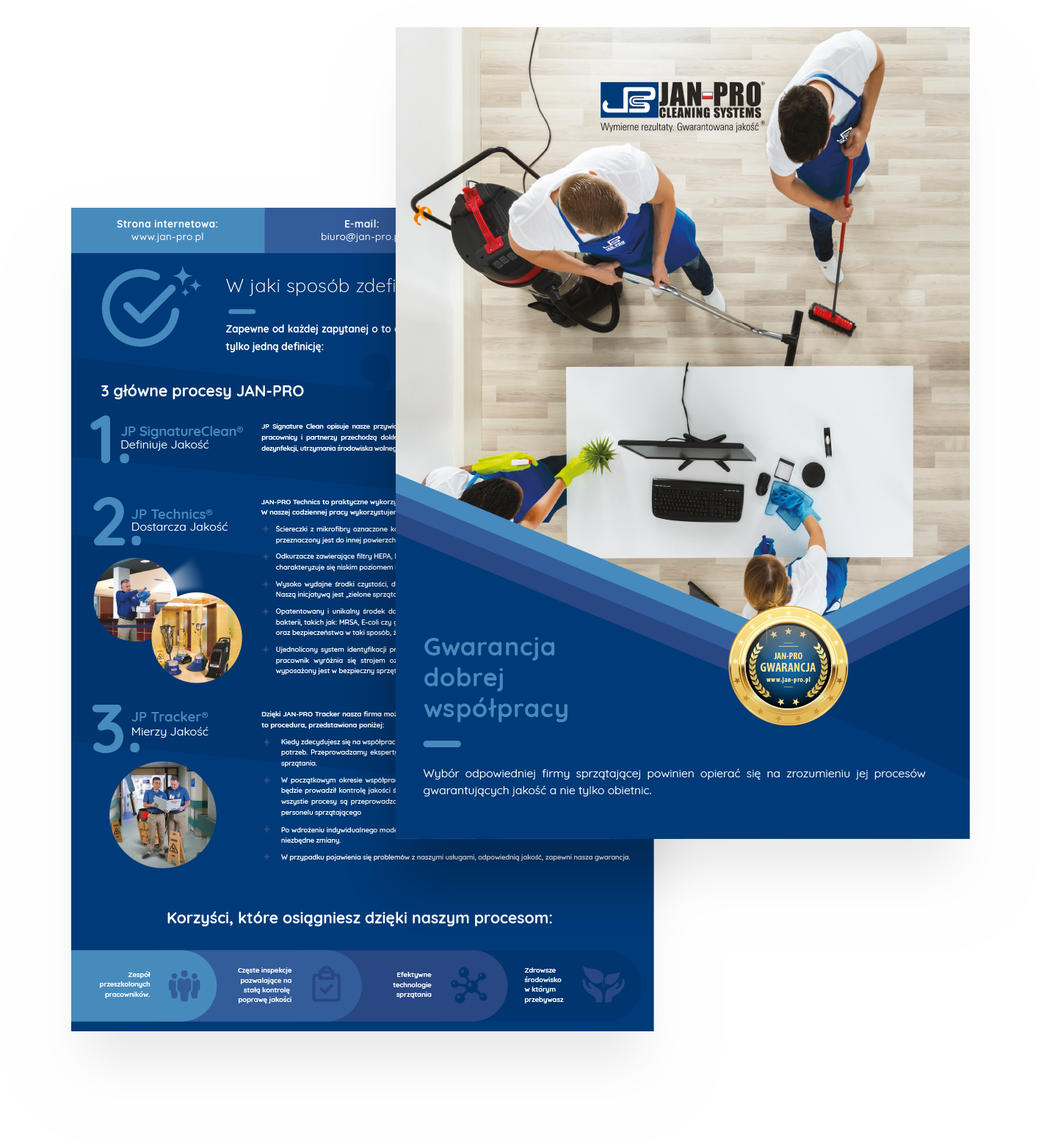 Broszura reklamowa przedstawiająca ofertę, misję, unikalne procesy JAN-PRO.